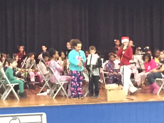 | The Bacon Concert band, in their PJs, performing some holiday numbers for our Bacon Bears. What an awesome day. |